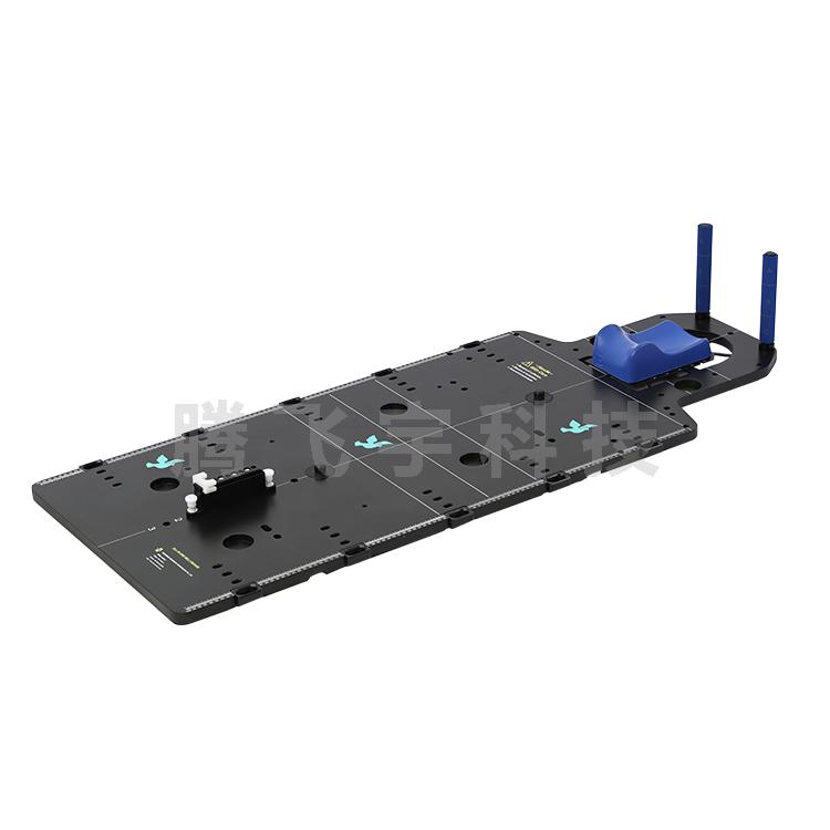 9.T型全身集成定位架底部有上下兩組固定卡條槽,可以將體架更牢固地固定在治療床面上,避免體板左右擺動。